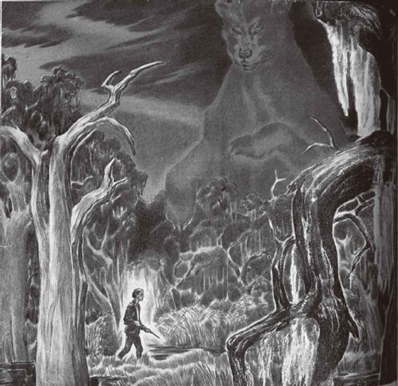 “你听到它们的声音了,”山姆说,“也见到它们的模样了。但咱们还没找到合适的狗。好的狗只要有一只也就够了。可是咱们没有。没准世界上哪儿也没有这样的一只狗。现在唯一的办法就是等大熊恰好撞上一个拿着枪的人,而这个人又恰好懂得怎样使枪。”