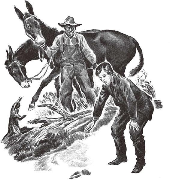 他不知道山姆究竟是何时离开的。他只知道山姆不在了。随后的三个早晨,他起床吃早饭时山姆都没在等他。他独自到守候的地点去;现在,没人指点他也能找到那地方了,他坚守在这岗位上就像山姆教他的那样。在第三个早晨,他又听见狗的声音了,它们又在有力、自由地奔跑着追踪一道真正的臭迹了,他就像别人教他那样地准备好了枪,却听见猎物嗖的一声窜了过去,他还没有准备好,还不配在两星期这么短的期间里就得到又一次机会,这两个星期比起他已经以坚韧、谦逊的心情奉献给荒野的漫长的一生无疑是太短了;他又听见了枪声,一下,那是华尔特·艾威尔那支步枪的单独的清脆的一声。这时他不仅能独自找到他的岗位又能回到营房,而且,靠了表外甥给他的指南针居然还来到了华尔特所在的地方,只见华尔特正守候在那只公鹿的身边,一群猎狗忙着在争食扔给它们的内脏,这时除了骑马的德·斯班少校与谭尼的吉姆外,别的人都还没赶到,连骑了那匹拉大车的独眼骡的阿许大叔也还没到,人们都说这骡子不怕血腥味,连熊的血腥味也不怕。